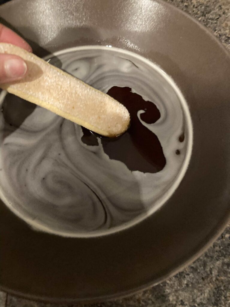 - Get the savoiradi biscuits and dip them into the bowl of coffee (they should be moist not soggy)